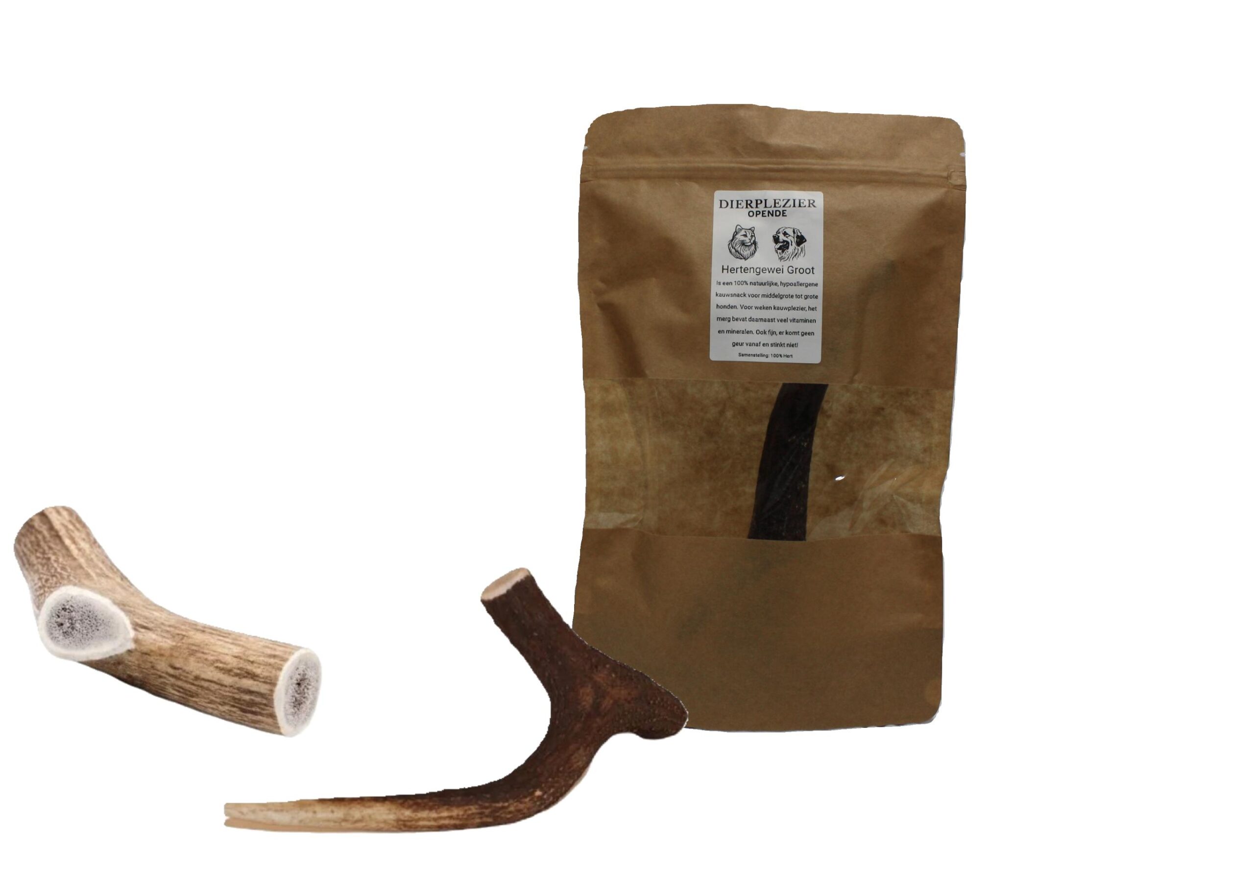 Is een 100% natuurlijke, hypoallergene kauwsnack dus ook geschikt voor honden met een allergie of eliminatiedieet.Het kauwen op een Hertengewei is erg goed voor de gezond tandvlees en het voorkomen van of verminderen van tandplak. Ook kost het kauwen op een Hertengewei veel energie en het hongergevoel wordt vermindert. Hierdoor erg geschikt voor honden met overgewicht of honden die geneigd zijn snel zwaarder te worden. Het merg binnenin het Hertengewei bevat veel vitaminen en mineralen.