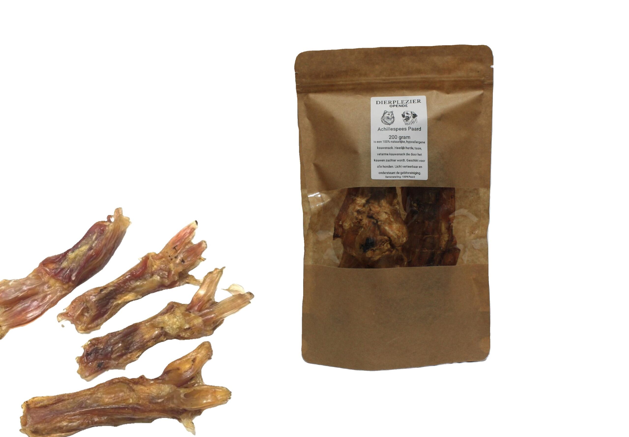 Is een 100% natuurlijke hypoallergene kauwsnack, dus ook geschikt voor honden met een allergie of eliminatiedieet. Achillespees Paard is een harde, taaie en vetarme kauwsnack die door het kauwen zachter wordt. Ook is Achillespees Paard licht verteerbaar en ondersteunt het de gebitsreiniging voor een gezond gebit.