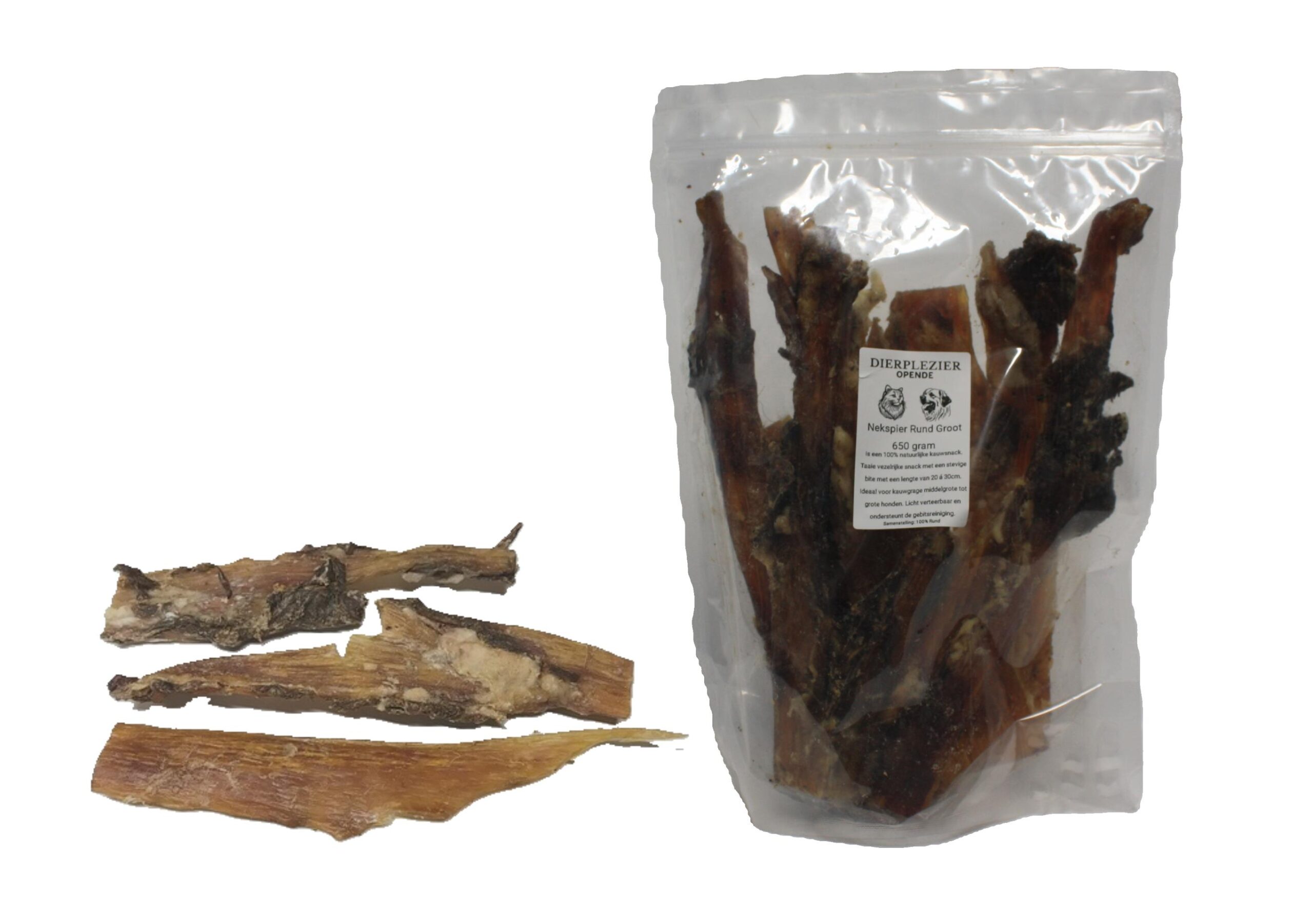 Door zijn lengte is deze Nekspier Rund Groot 650 gram geschikt voor de kauwgrage middelgrote tot grote hond. Voor de kleine hond adviseer ik de Nekspier Rund 250 gram.