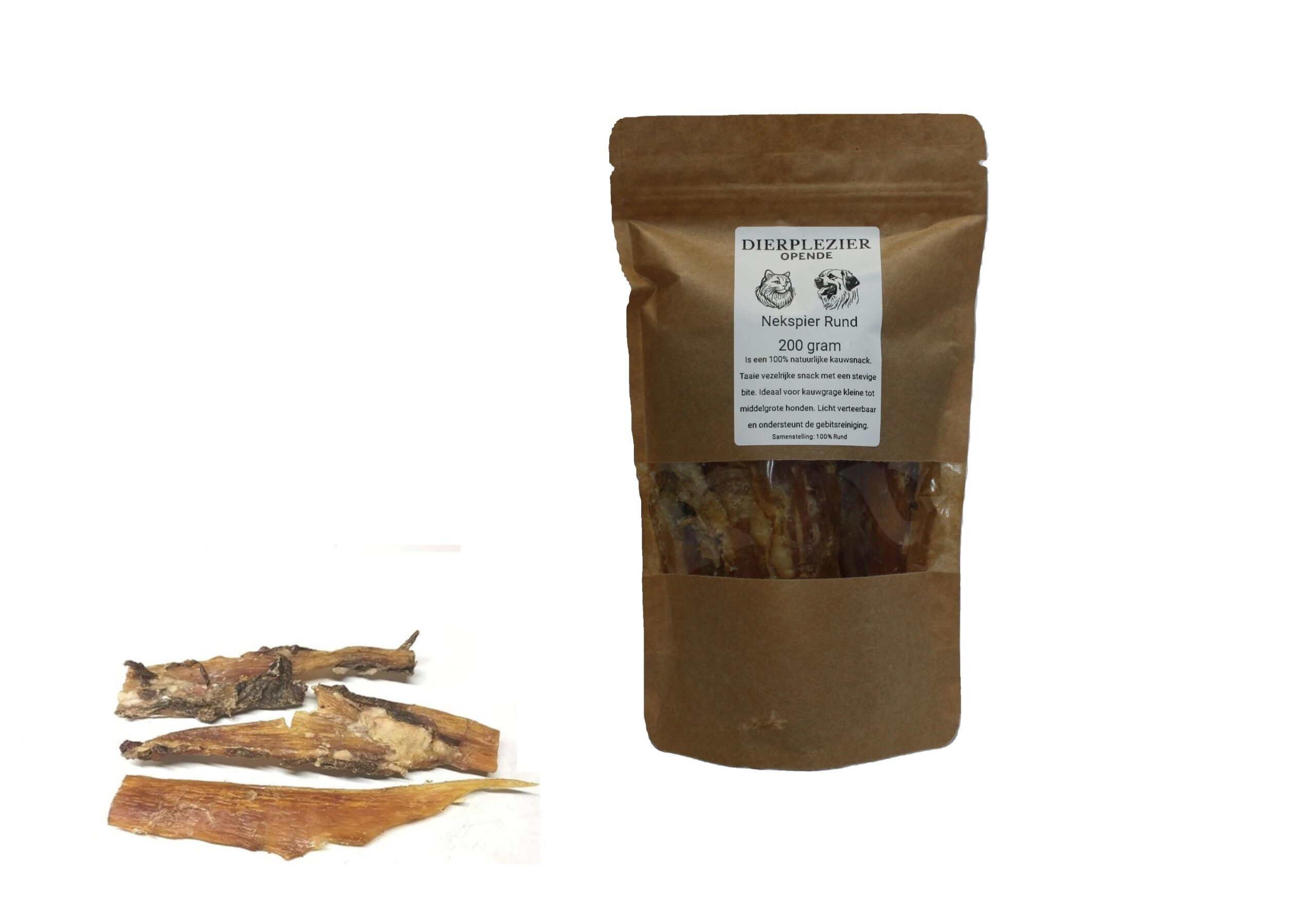 Door zijn lengte is deze Nekspier Rund 200 gram geschikt voor de kauwgrage kleine tot middelgrote honden. Voor de grote hond adviseer ik de Nekspier Rund Groot 650 gram.